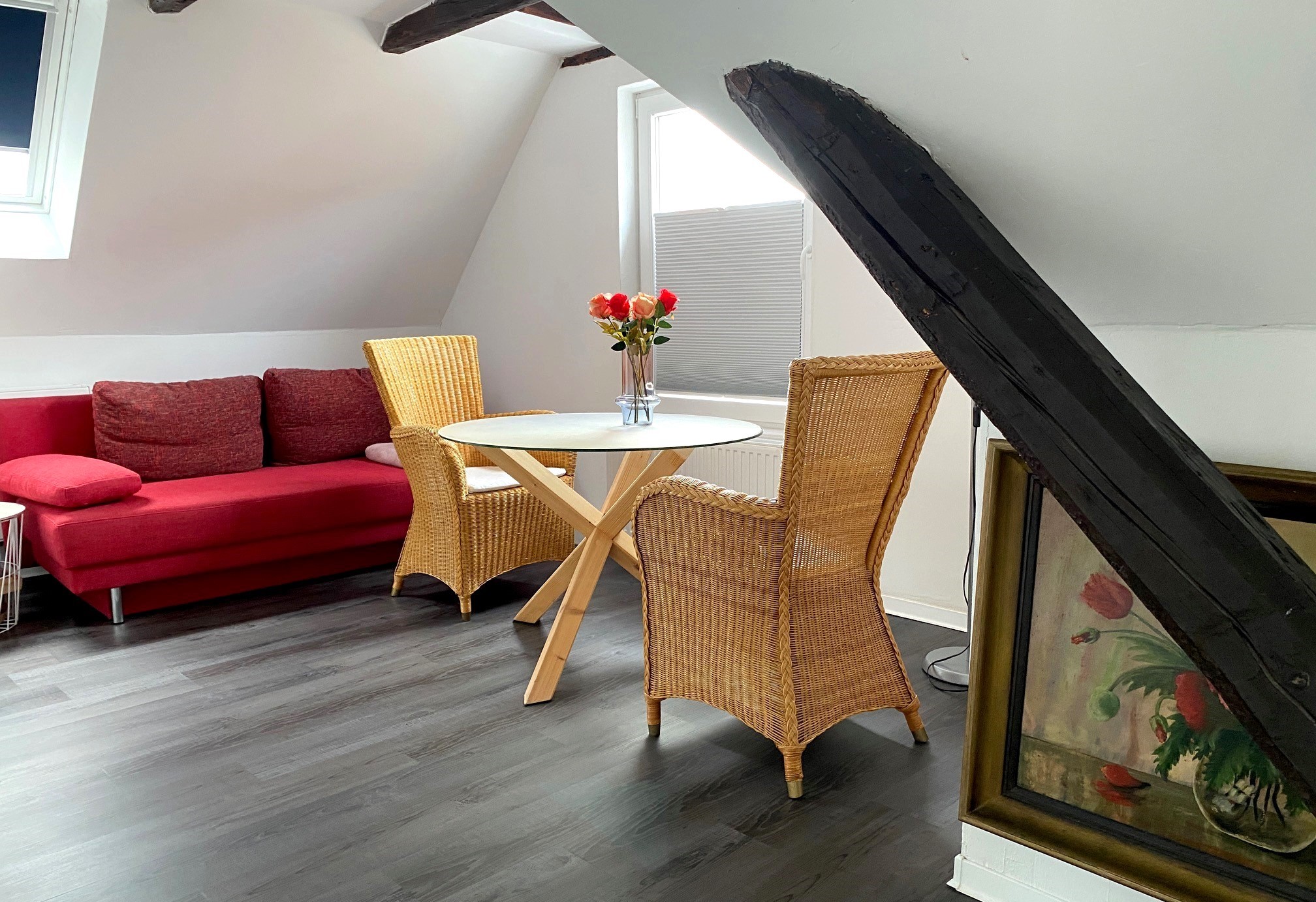 Fewo SCHÖNE AUSSICHT: Lounge mit weiterer Sitzecke/Leseecke und ausziehbarer Schlafcouch