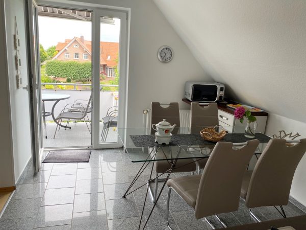 - Eßzimmer mit Küchenzeile und Tür zum Balkon