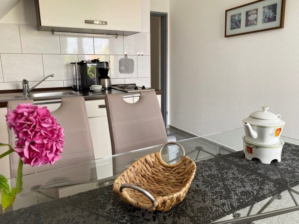- Vollausgestattete Küche mit Kühlschrank, Geschirrspüler, E-Herd + Backofen/Mikrowelle, Filter- + Pad-Kaffeemaschine, Wasser- und Eierkocher, Toaster + Geschirr etc.