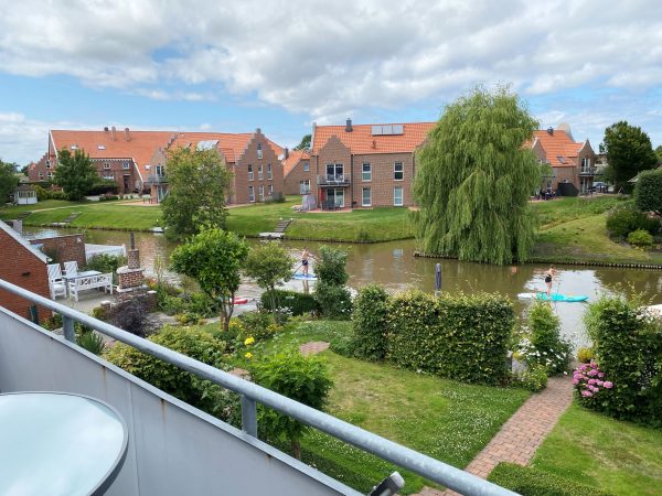 Vom Balkon und aus der Wohnung haben Sie einen herrlichen Blick auf den Wasserlauf des Sieltiefs und die Seitengrachten. Zentrale Lage und dennoch ruhig. Bettwäsche & Handtücher inklusiv.