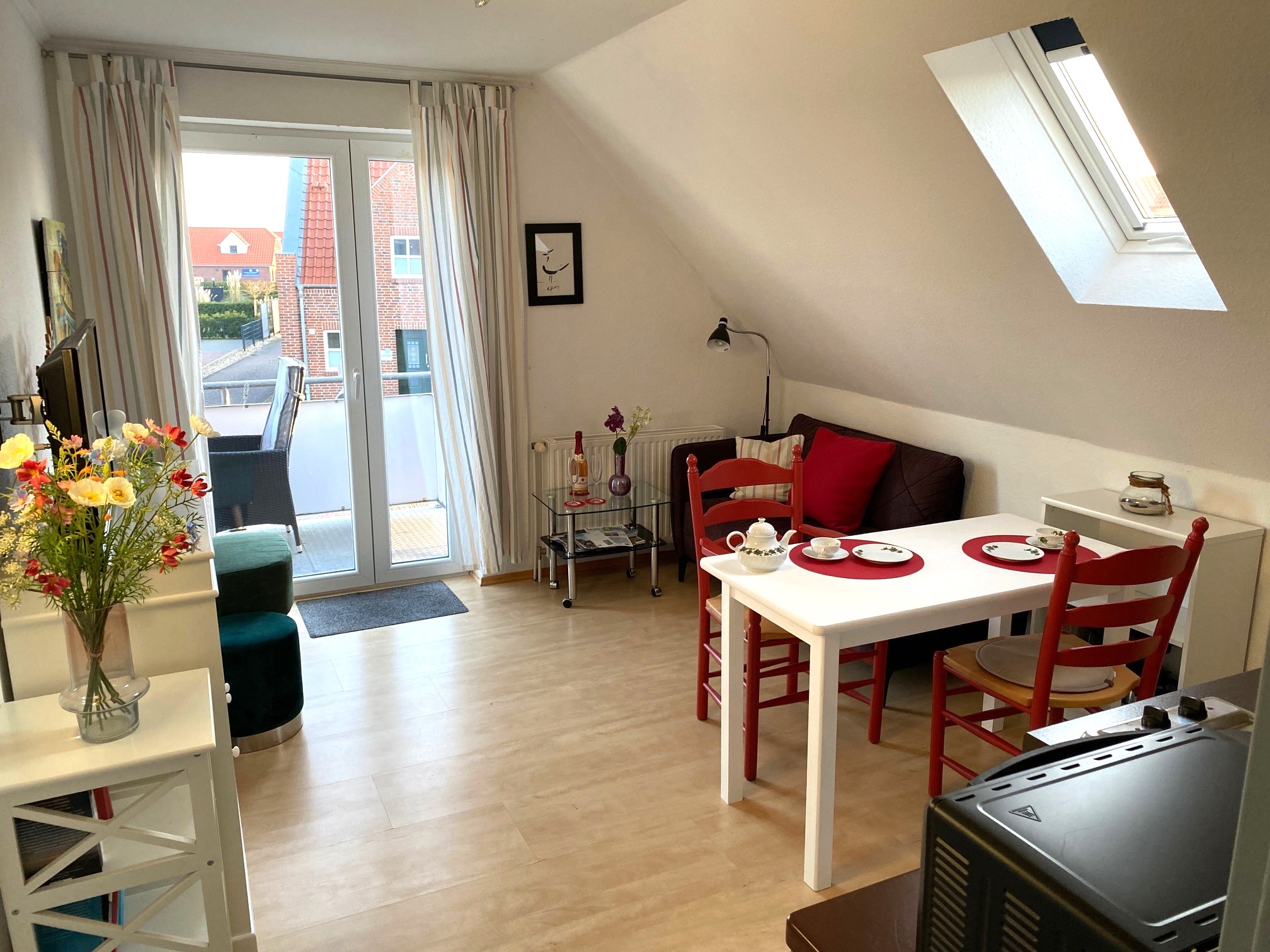 FERNBLICK: Wohn-/Esszimmer und Zugang BalkonTeilen Sie dieses Bild Share on FacebookShare on Facebook